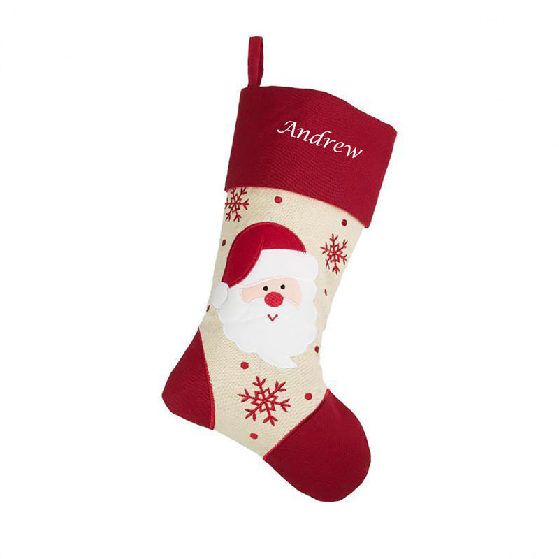 Personalised Embroidered Christmas Santa Stocking Red Cream 40cm