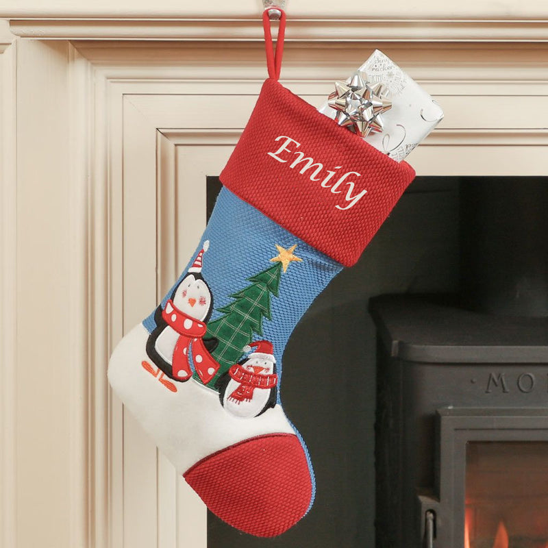 Personalised Embroidered Christmas Stocking Vintage Penguin