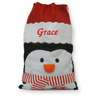 Personalised Embroidered Large Penguin Christmas Gift Sack Bag Penguin