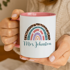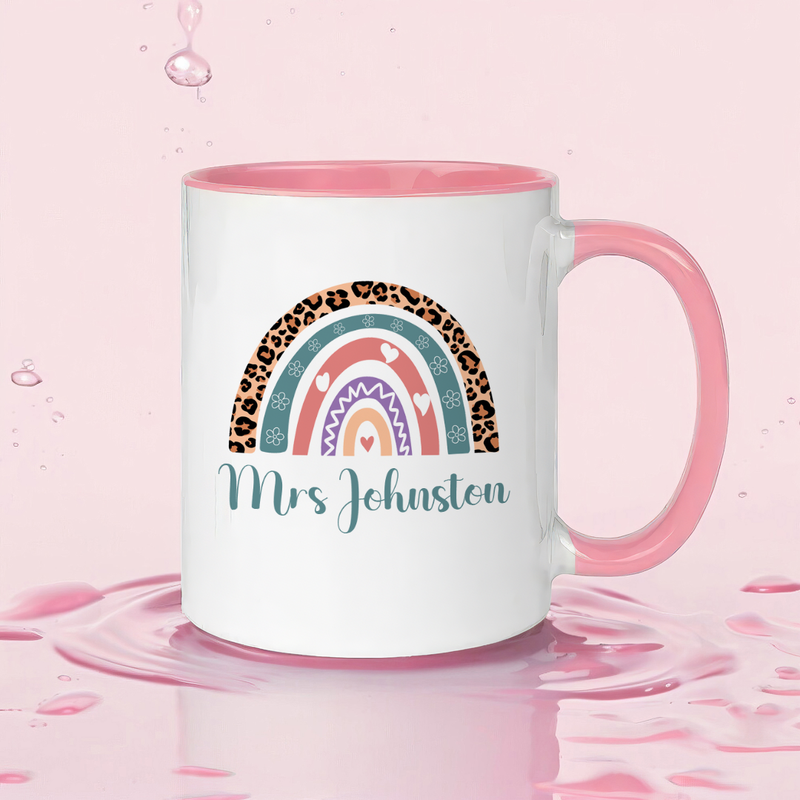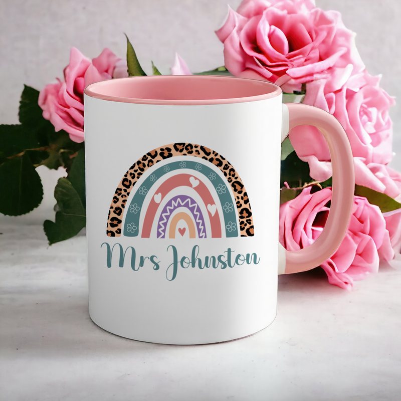 Personalised Teacher Mug – Rainbow Design Customised Name – Unique End of Term Teacher Gift from Pupil – Thank You Tutor Present for Year Leaving Teacher Assistant