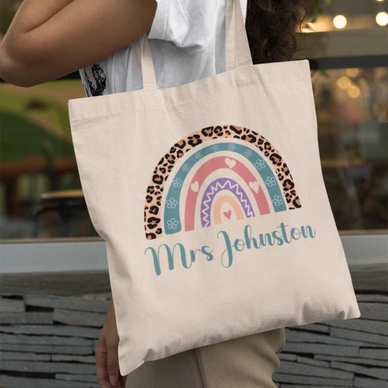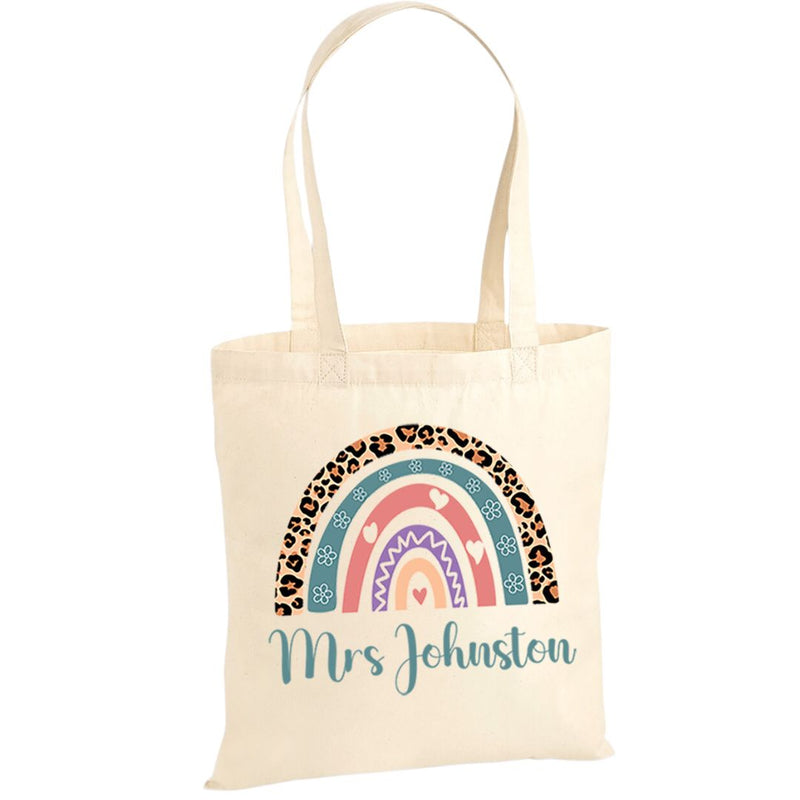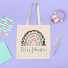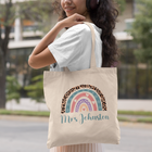 Women's Personalised Tote Bag Teacher & Pupil Gift End of Term Rainbow Art Design Learning Assistant Thoughtful Nursery Thank You Natural Cotton