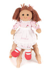 Personalised Embroidered Girls Vintage Style Rag Doll Pony Dress Brown Hair