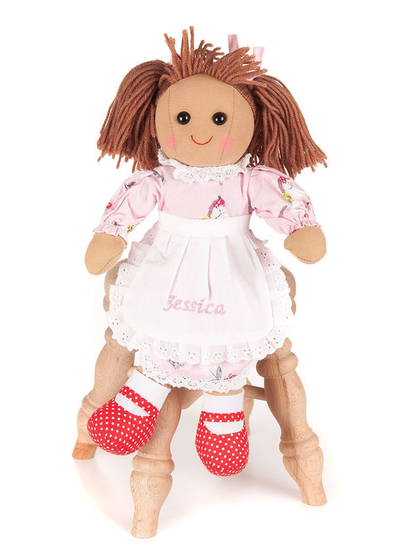 40cm Tall Traditional Vintage Style Rag Doll with pink pony print dress and white apron Personalised with the name of your choice
