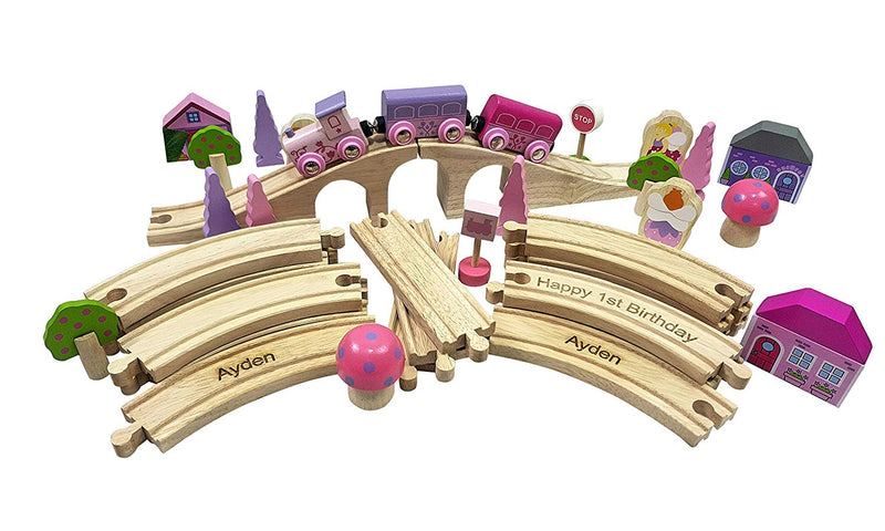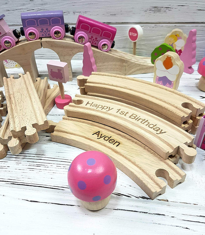 Personalised Engraved Wooden Figure of 8 Fairy Train Set Toddler Pink Girl's Gift