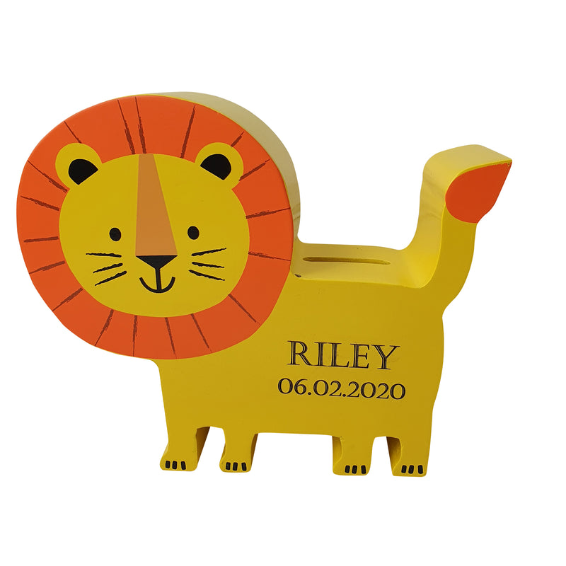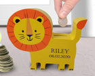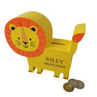 Personalised Money Box Wooden Jungle Lion Piggy Bank Baby Money Box Kids Gift