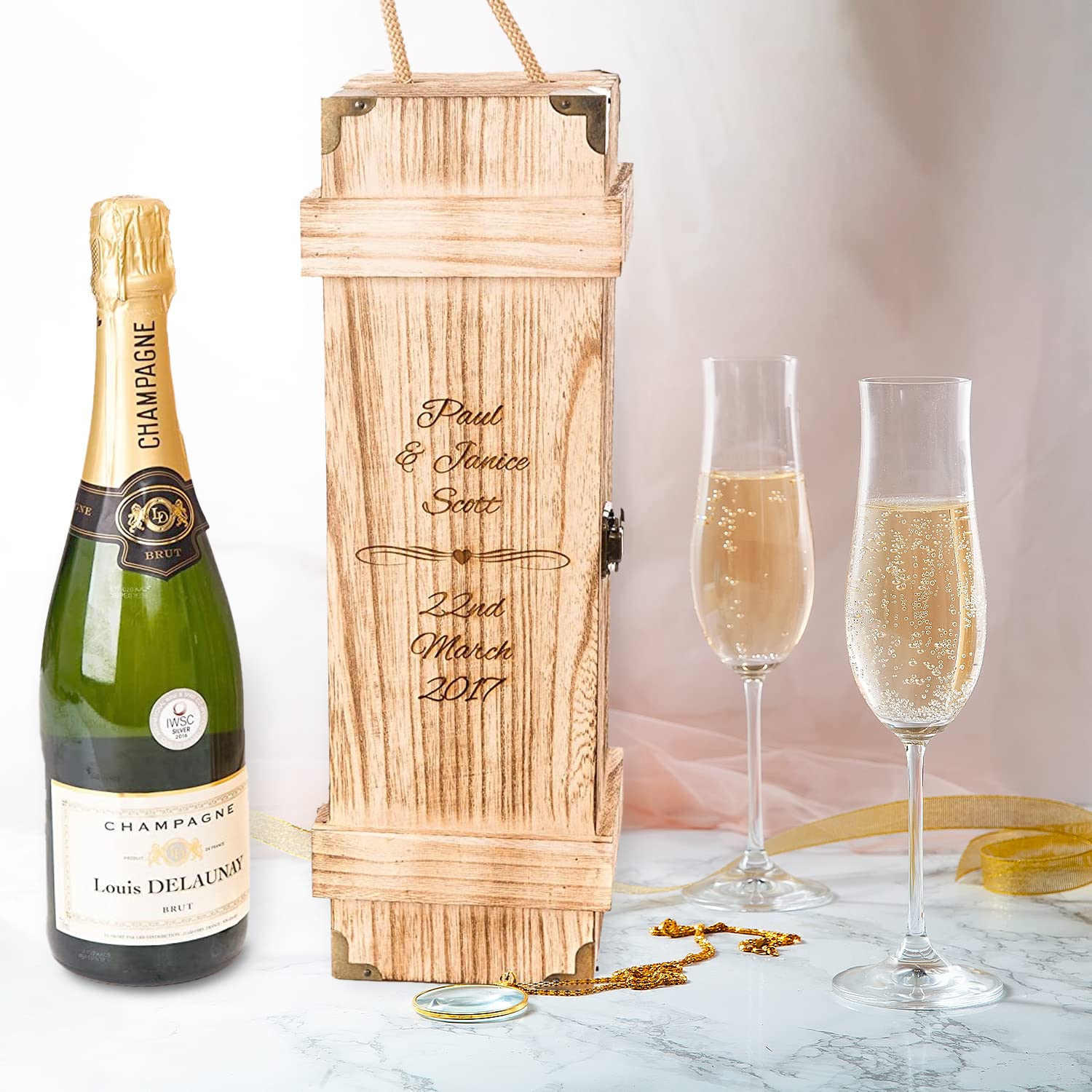 - Personalised Wine Box with Names and date in the design as shown WINE NOT INCLUDED