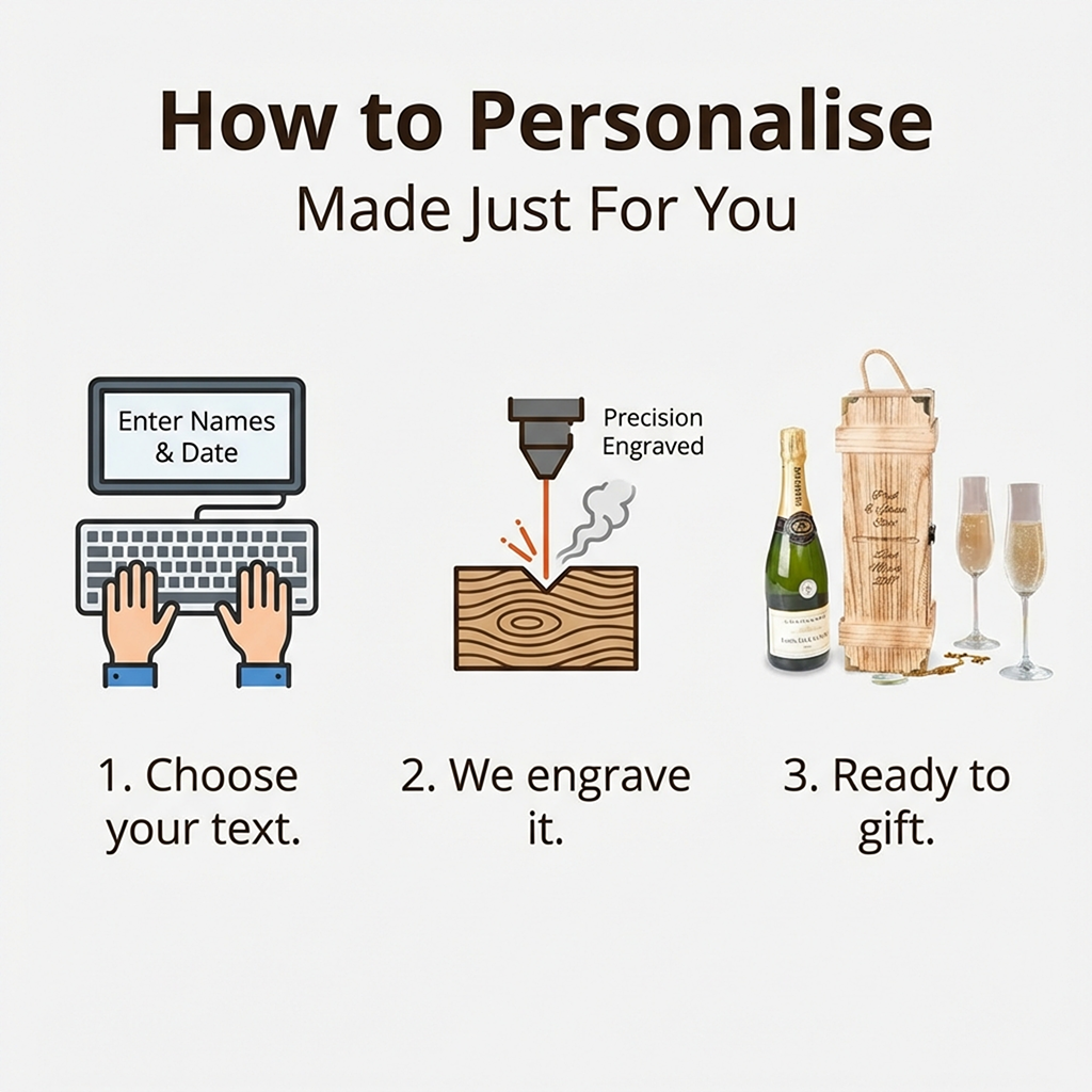 Personalised Champagne Box Personalised Engagement Gift Wedding Anniversary Custom Wine Wooden Gift Box Date Night Box Hamper Valentines Day Present Engraved Couple