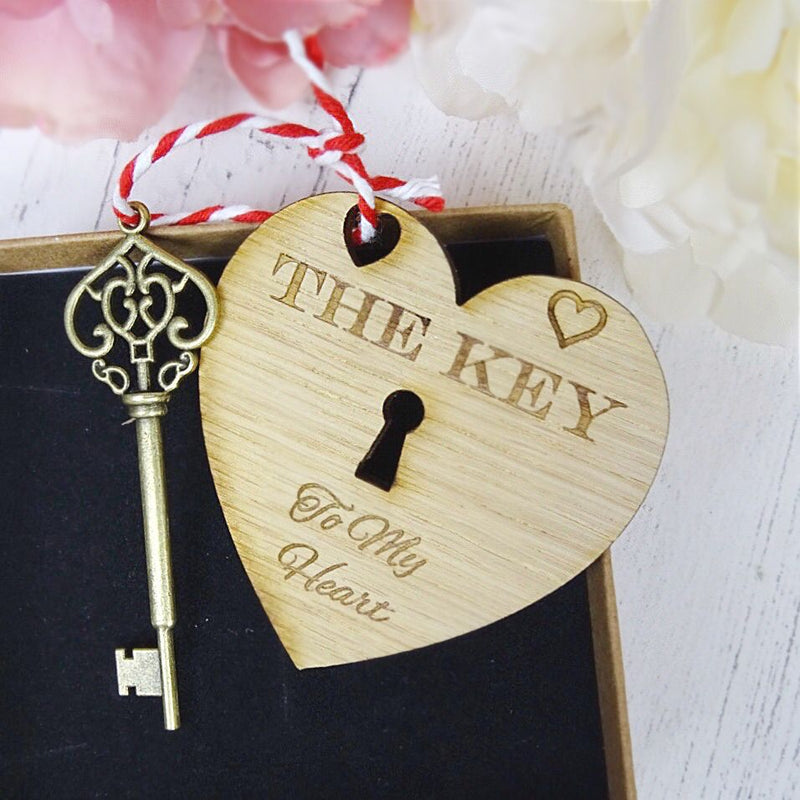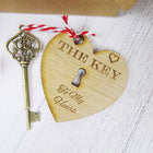 Key To My Heart Metal Key is 8cm and Wooden Heart Tag also 8cm, presented in mini burlap sack.