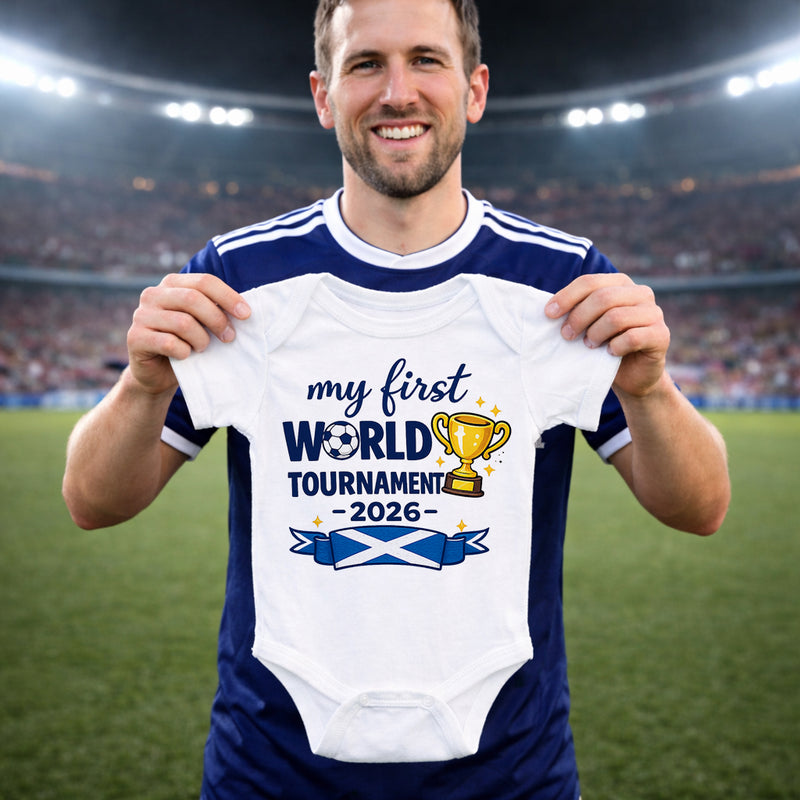 Celebrate your baby’s first football tournament with this adorable My 1st World Cup Scotland 2026 Babygrow.