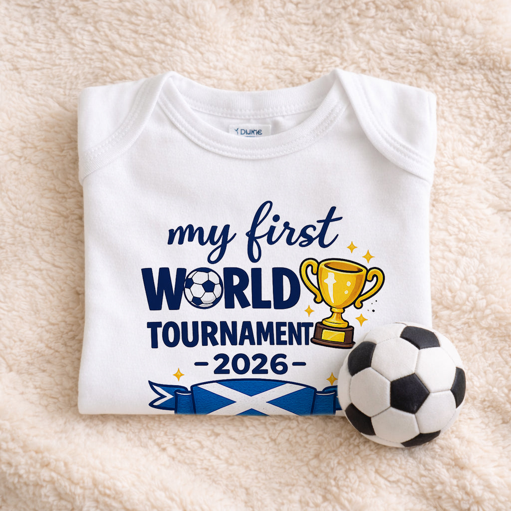 My 1st World Cup Scotland 2026 Babygrow – Scotland Football Baby Vest – Scottish Flag Newborn Bodysuit – Cute Baby Football Outfit – Baby Shower Gift for Scotland Fans