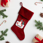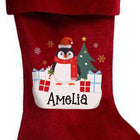 Personalised Christmas Stockings for Kids, Baby, Toddler - Red Velvet Style Xmas Penguin