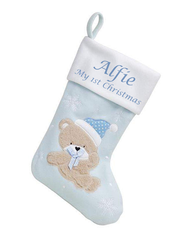 Personalised Christmas Stocking Baby Teddy - Blue, Grey, or Pink - My 1st Christmas