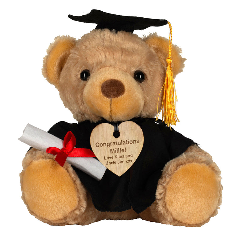 - Personalised Wooden Tag engraved with the text of your choice, Commemorate the Class of 2025 graduation with a personalised teddy bear