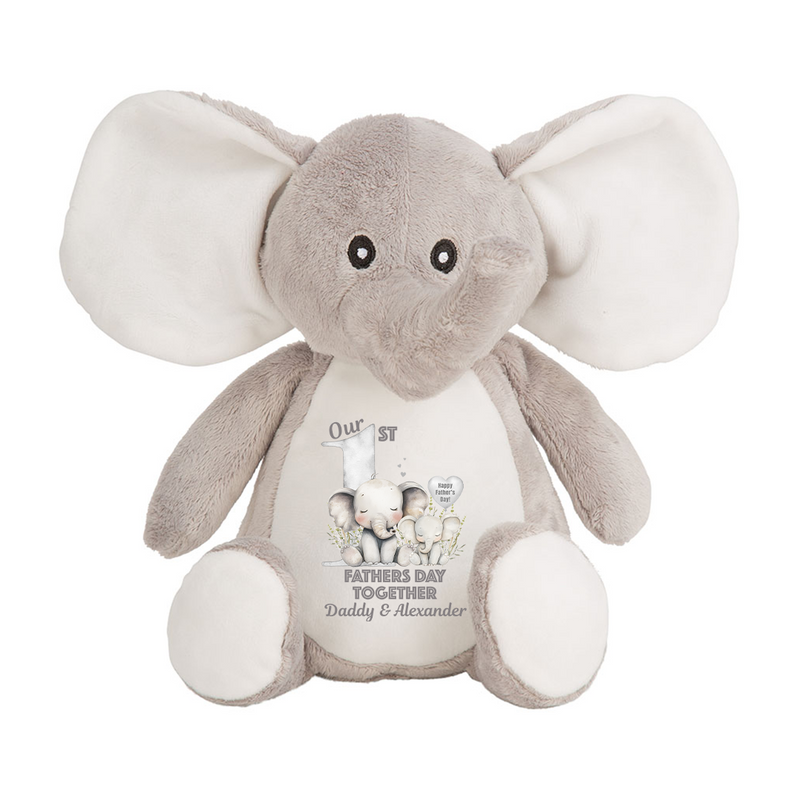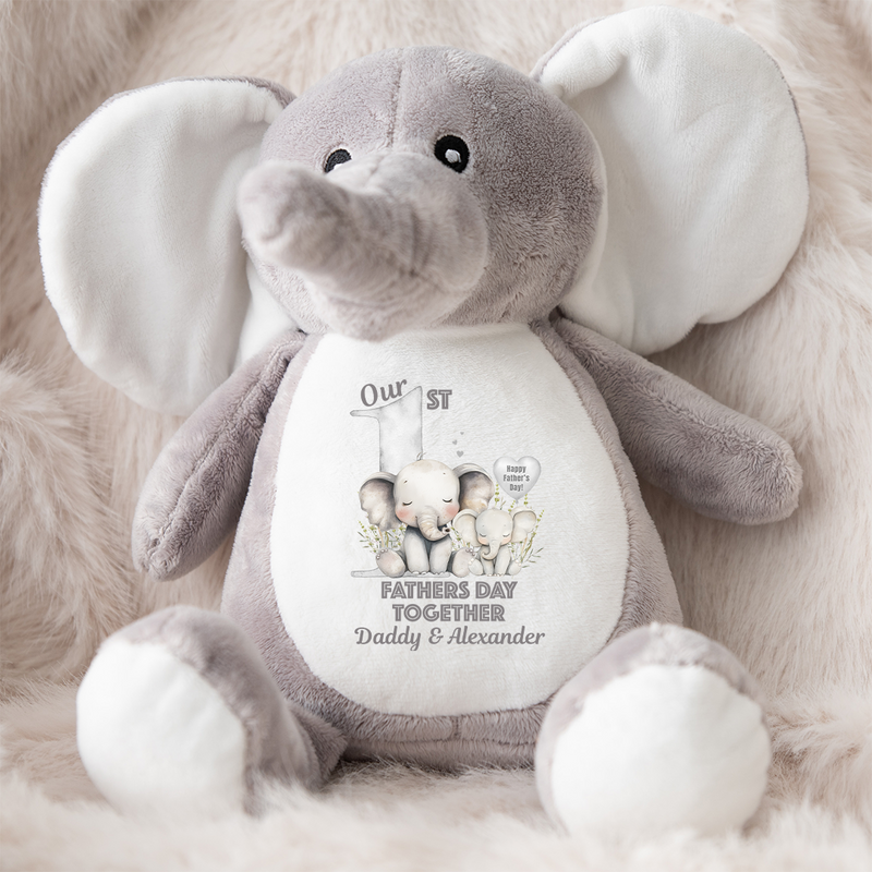 Our premium set includes an ultra-soft 100% cotton sleepsuit, made with your baby’s comfort and delicate skin in mind. Accompanied by a cute plush elephant teddy, the entire gift set is designed to bring smiles, snuggles and joy on a day that marks a milestone in every new dad’s life. The sleepsuit features a delightful design with the wording ‘My 1st Fathers Day’ alongside an adorable elephant illustration, personalised with your baby's name and the year 2025 for a truly unique touch.