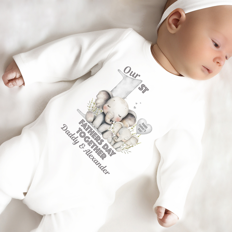 Celebrate the first shared moments with your little one using our My 1st Fathers Day Sleepsuit Elephant Teddy Gift Set Personalised Pyjamas Baby Daddy Newborn Gift Together First 2025 — a truly sentimental keepsake that speaks straight to the heart.