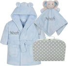 Personalised New Baby Gift Set for Boys - Hoolaroo Blue Baby Dressing Gown, Elephant Comforter & Suitcase