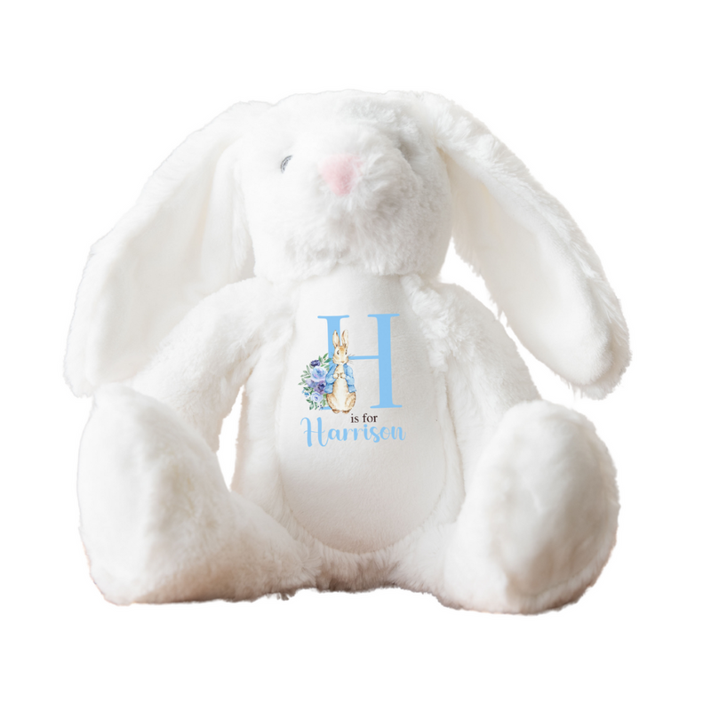 Personalised Bunny Rabbit Letter Name Baby Cream Blue Gift For Newborn Boy Teddy Bear 23cm New Baby Present Easter