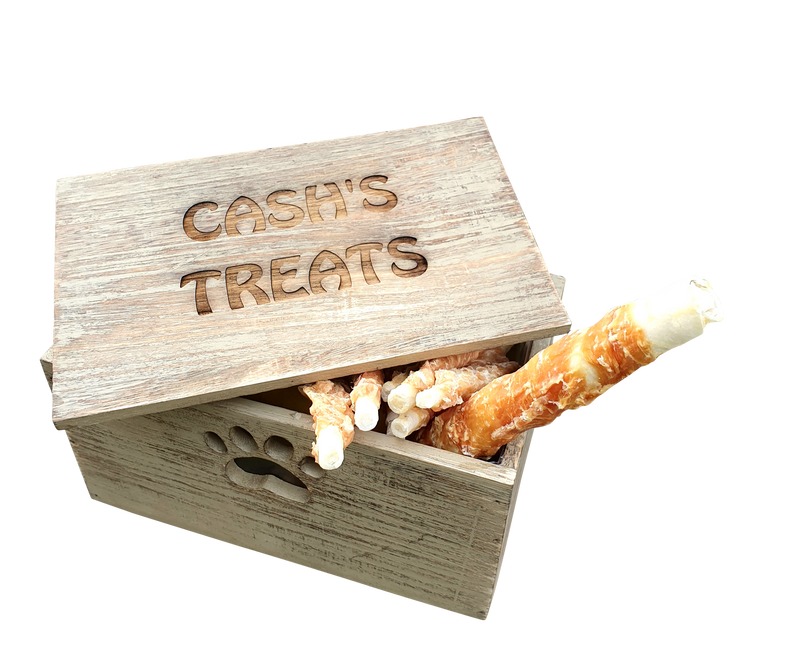 - š¶ PERSONALISED DOG TREAT JAR - This gorgeous wooden box makes a perfect dog treat jar. Please provide the full text for us to personalise including the word treats if required. Up to 20 Characters