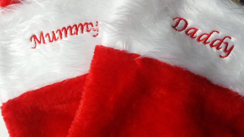 Personalised Embroidered Deluxe Christmas Stocking with Name Hoolaroo Personalised Christmas Stocking Quality Embroidered Product ( not printed) Lovely item. Personalised with the name of your choice 57cm aprox from toe (longest length)