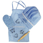 Personalised Embroidered Kids Baking Set Apron cutters Chef Hat Blue Gift Box