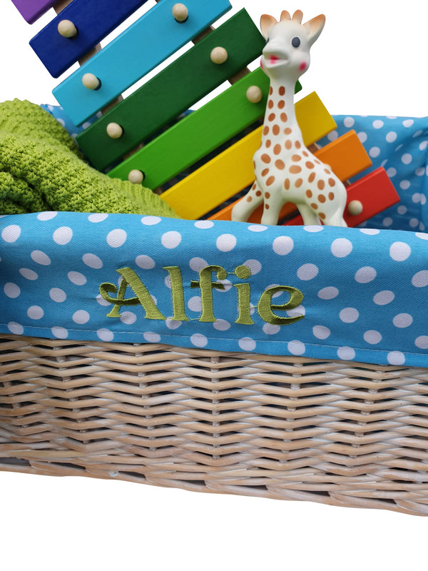 Personalised Embroidered Wicker Storage Baskets Hamper Baskets For Gifts Blue