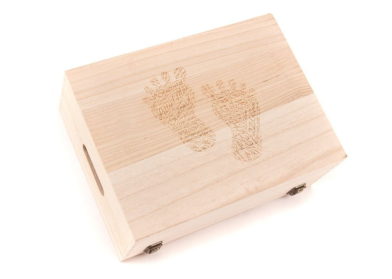 Personalised Engraved Baby Wooden Birth Keepsake Memory Memory Box Footprint LARGE