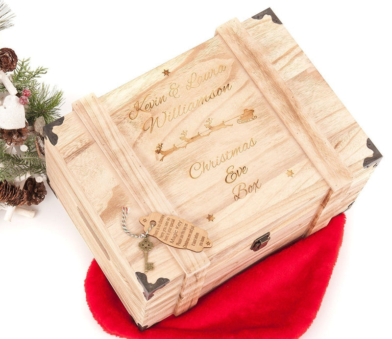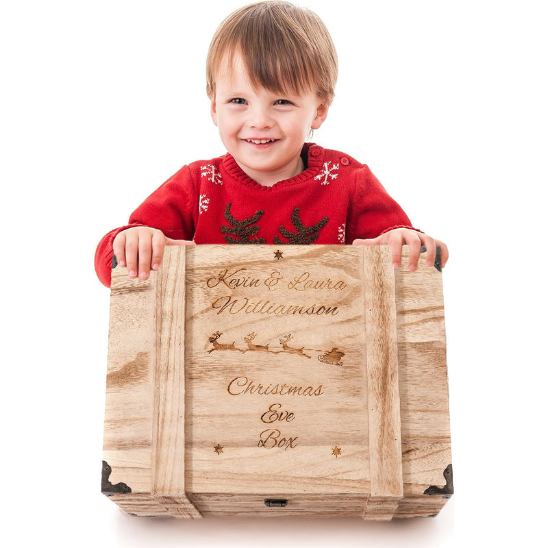 Personalised Engraved Christmas Eve Box Vintage Wooden Oak Style Chest Large Box