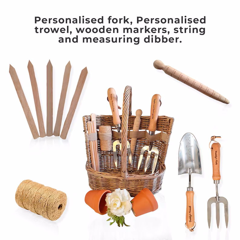 Our garden gift set includes a selection of high-quality, personalised tools and accessories that are both functional and beautifully crafted. Perfect for avid gardeners and beginners alike, this set makes a thoughtful present for Mum, Dad, Grandad, Grandma, or anyone who loves spending time in the garden.