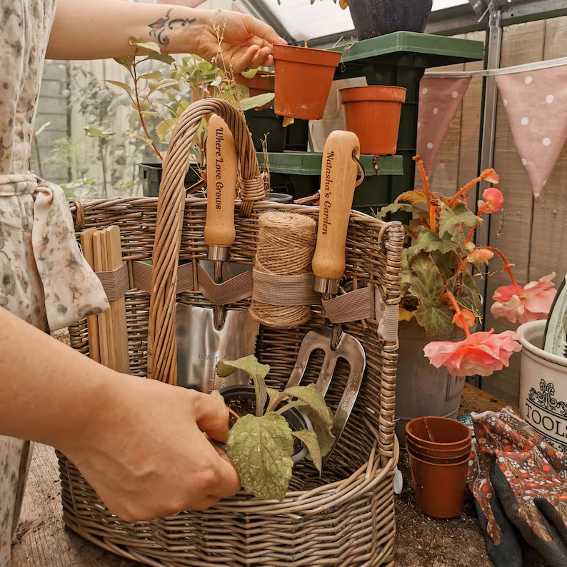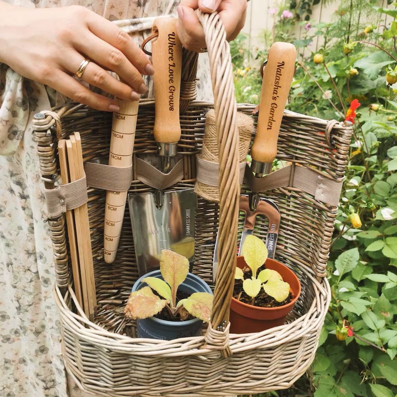 Personalised Gardening Tool Set Willow Trug, Fathers Day Garden Gift Set Birthday Present Basket Gardener Retirement Gift, Mum, Grandad Dad