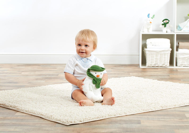 The Snowman celebrates his 30th anniversary this year and draws in over 2 million viewers every year at Christmas. The original Snowman Book by Raymond Briggs has sold 2.6 million copies in the UK alone. The Cuddly Snowman is ideal for little ones to cuddle at bedtime and is the perfect companion when being read the Snowman book or watching the Snowman film. The Cuddly Snowman is super soft and measures 22cm in height. He wears a smart green hat and matching scarf to keep him warm. The Cuddly Snowman has a black embroidered mouth and eyes and a bright orange felt nose. He has embroidered black buttons on his body. Who could resist this cute soft Cuddly Snowman?