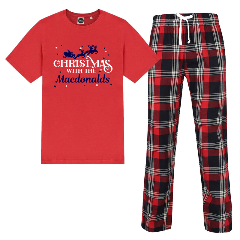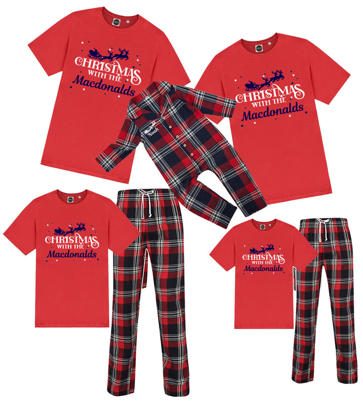 Personalised Family Christmas Pyjamas - Xmas Pjs Santa's Sleigh Men Women Kids Toddler Sleepsuit Tshirt