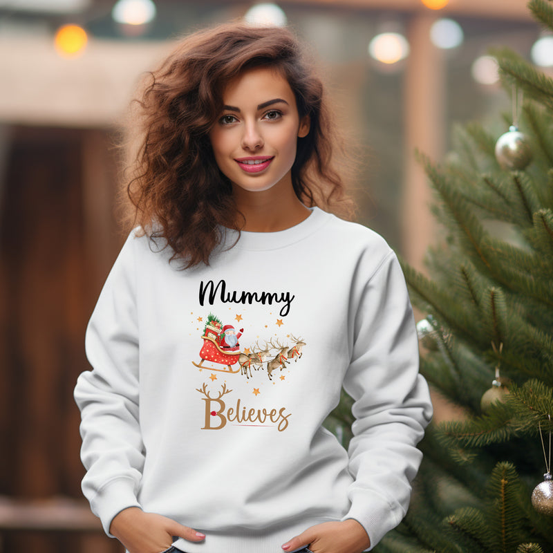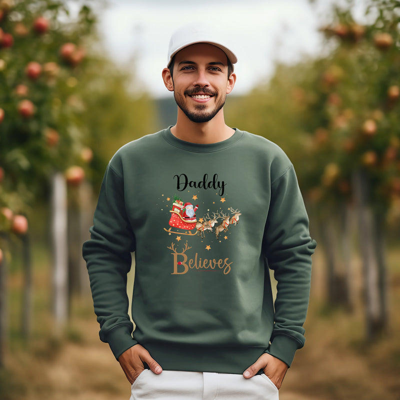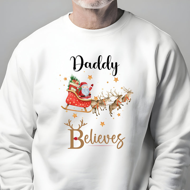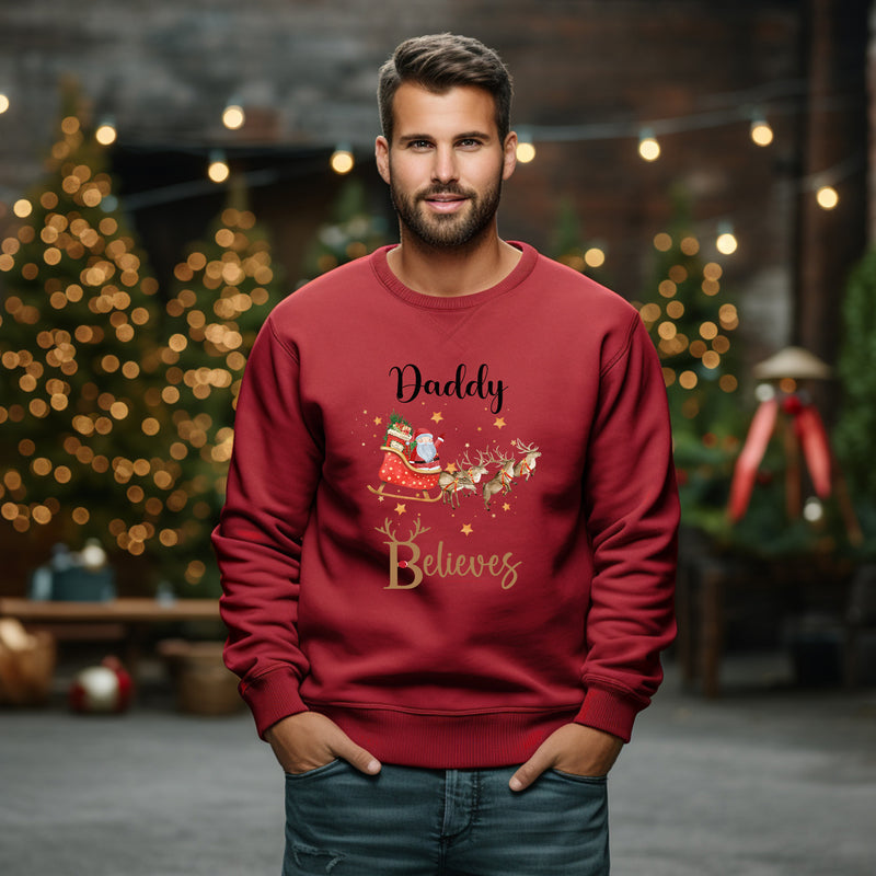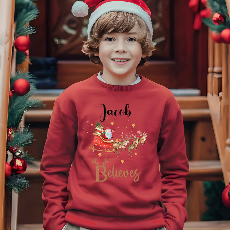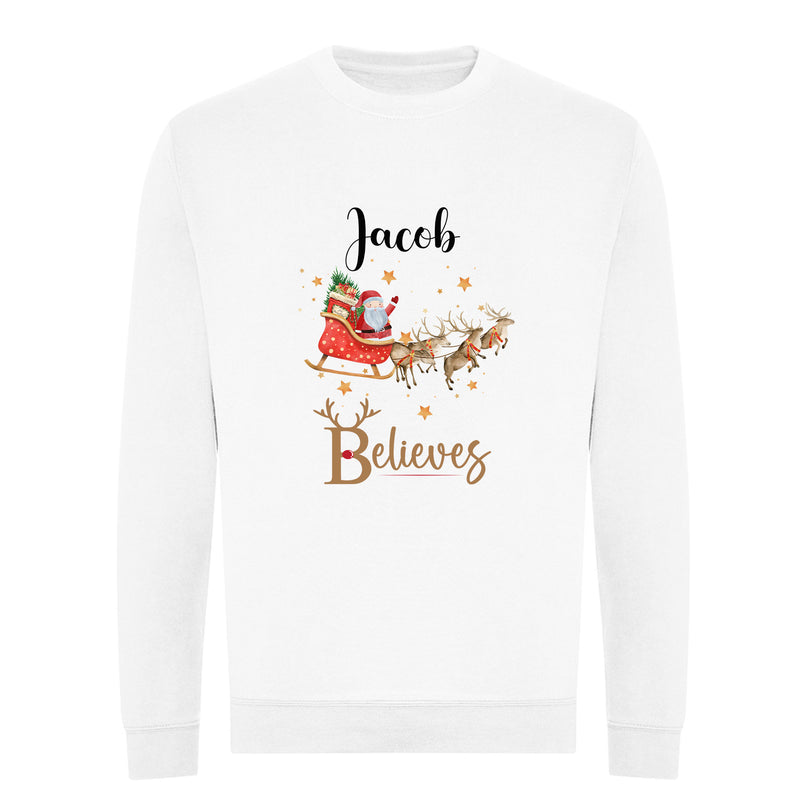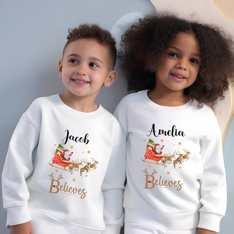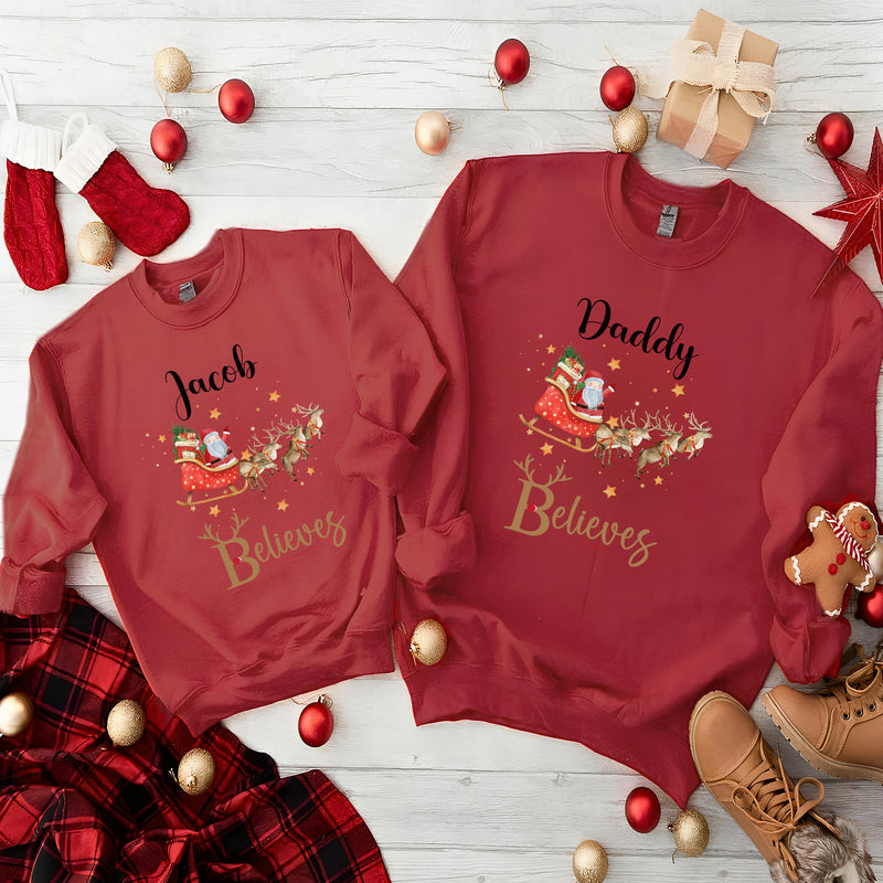 Personalised Family Matching Christmas Jumper Matching Christmas Sweatshirts Santa Sleigh Believes Christmas Jumper Adult and Child Boy Girl