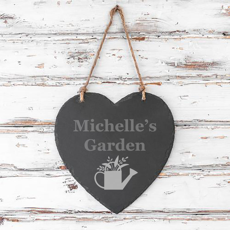 Personalised Garden Sign Engraved Slate Heart Sign Personalised Garden Plaque Watering Can
