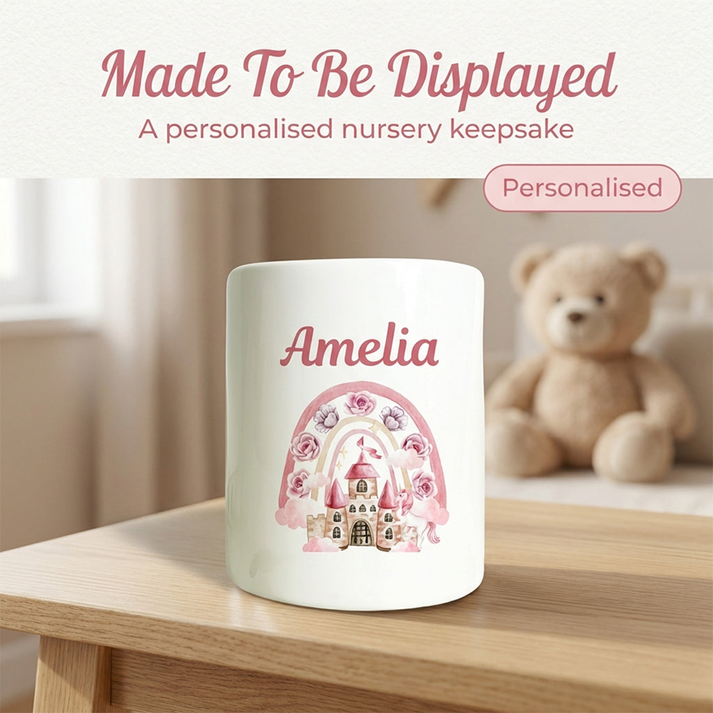 🏰 Perfect Gift for Special Occasions – Whether it's a baby birthday or christening, this kids money box is designed to be a timeless, thoughtful customised gift. Add a child’s name to create a truly unique present that adds charm to any room.