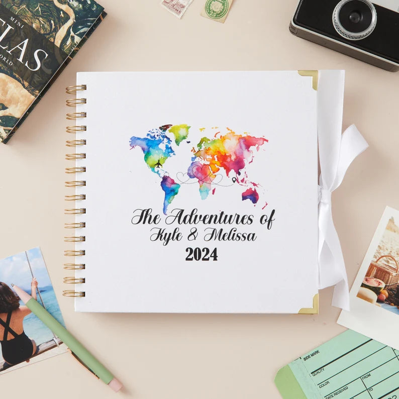 Personalised Scrapbook Travel Handmade Photo Album Scrap Adventure Book Holiday Memories 22cm 50 pages Rainbow Map Design