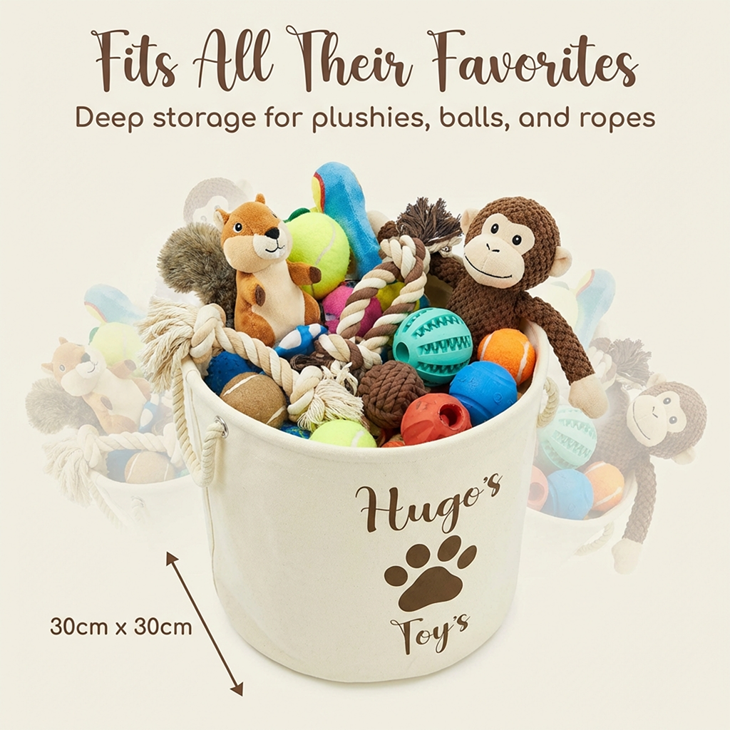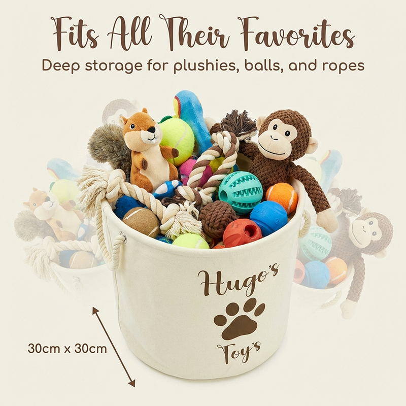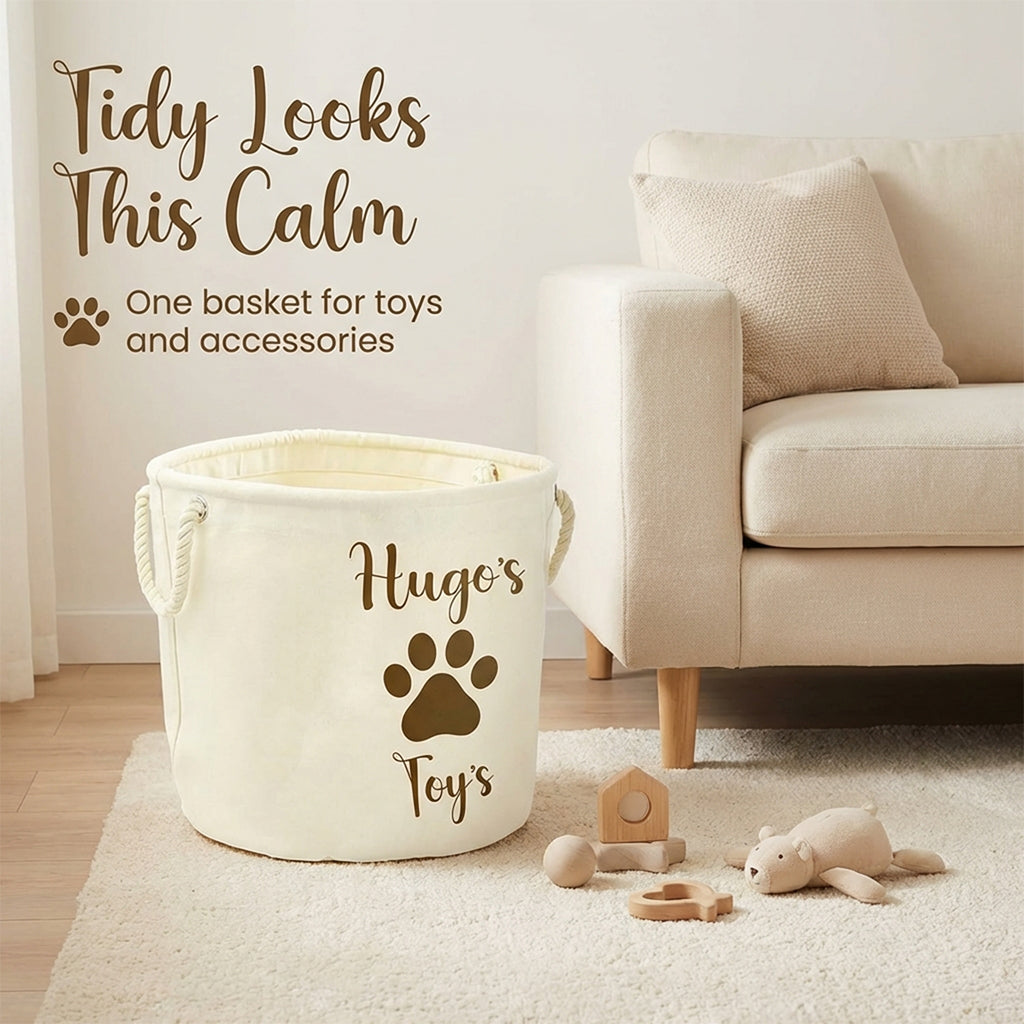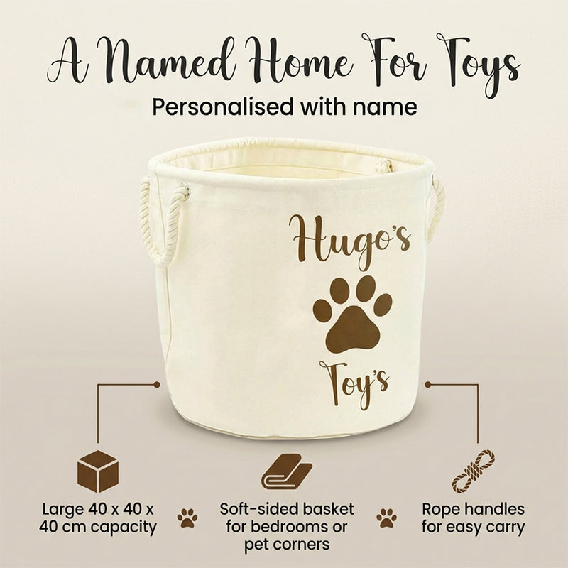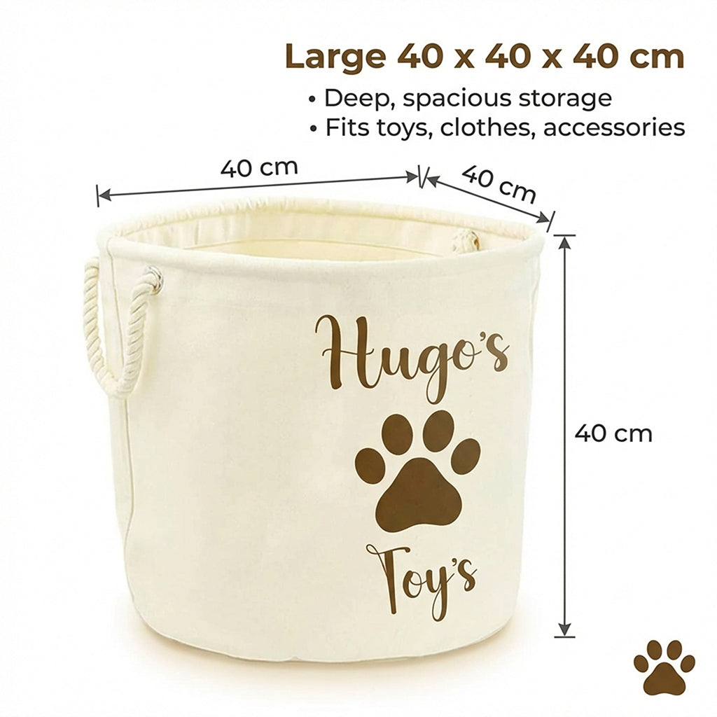 Personalised Toy Box Storage Basket For Kids - Paw Print Design with 2 Sizes - Baby Deer Name Gifts For Girls & Boys - Tidy Room