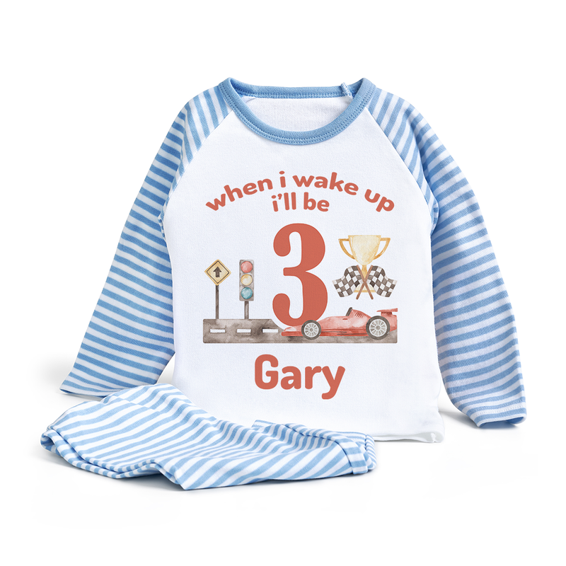 Personalised When I Wake Up I Will Be 1 Racing Car Pyjamas 2 3 4 5 Boys Birthday PJs – Custom Kids Birthday Pyjamas