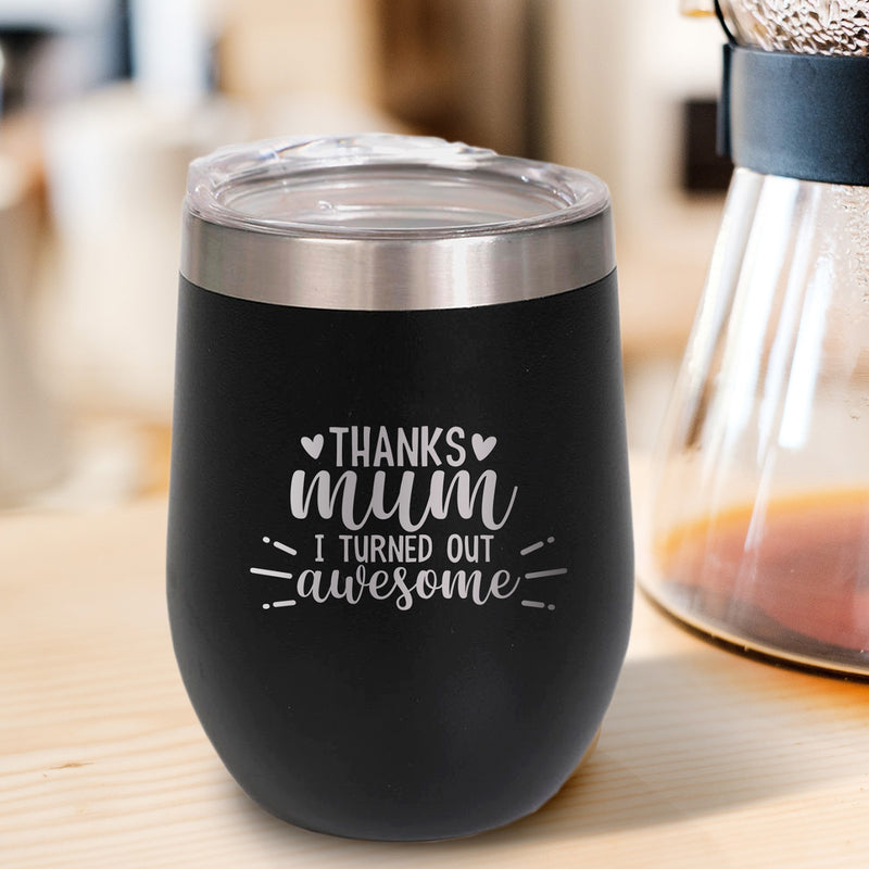 - Mum Gifts From Son - This Stainless Steel Wine Coffee Or Whiskey Tumbler Can Hold Up To 12oz/340ml Of Your Favorite Drink. It Comes In A Sleek Size . It Is The Perfect Size Cup To Contain Your Wine, Whiskey, Soda Or Fancy Cocktail.