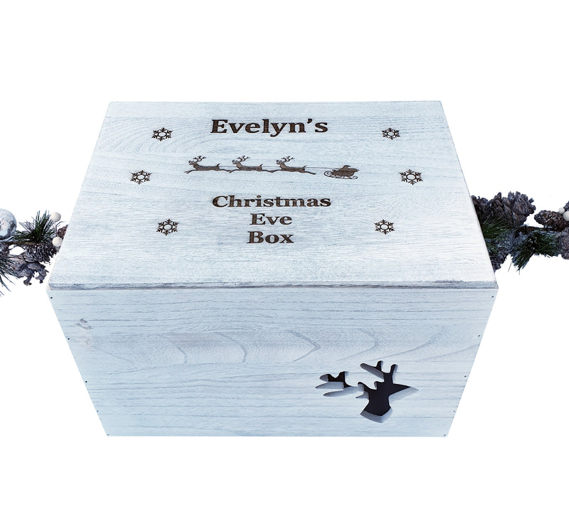 - Lovely Personalised engraved white wash effect christmas eve box, made bespoke for you